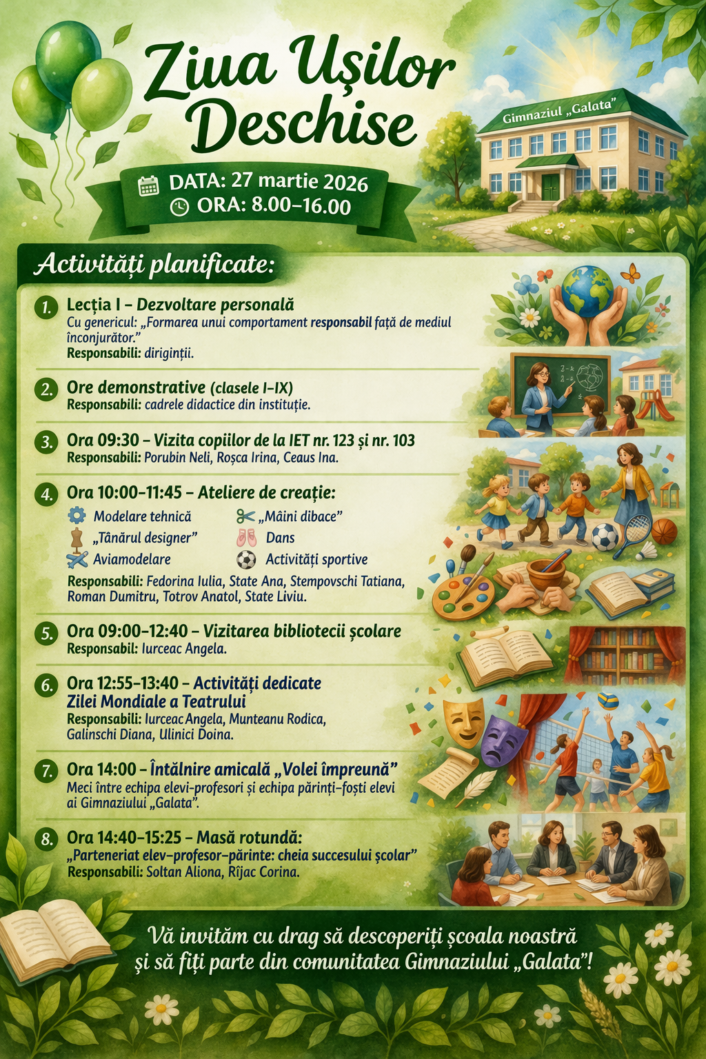 De Ziua Fericirii, am reușit să aducem un strop de bucurie nu doar oamenilor, ci și naturii, prin activitatea de salubrizare și înverzire a teritoriului adiacent instituției, a stadionului, precum și a unor spații din comunitate.